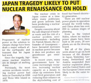 Ya I heard about the Toronto government holding off on building a new power plant because of the disaster in Japan, there is a lot of concern about the location of the new plants and there are many new inspections that need to be made now.